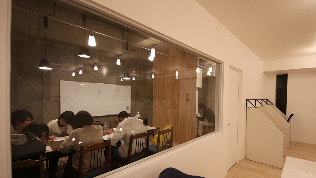 「慶早進学塾 岐阜校」 オーナー様から、生徒が自主的に勉強できるような塾にしたいと要望があり 一つの空間の中で、開放的に休憩できる場と個々に集中できる場を分け、二つの空間を共存させました。 学習塾の多い通りなので、差別化を図る為、カフェのようなレイアウトにすることで、生徒自ら塾に行きたくなるようなデザインにしました。
