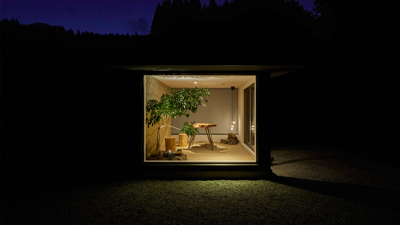 「荒船いとわ -世界遺産retreat-」 「⾃然」と「⼈間の暮らし」がせめぎあう 限界集落 への再考。 既存の建物内部に点在する自然を表現したオブジェクトや、逆に増築部は自然に溶け込みながら拡張していく様を 意図的に作り出し、 自然と人間が互いに侵境し合い生き続けるこの場の様を、建築/内装の改修における意匠へと再構築しました。